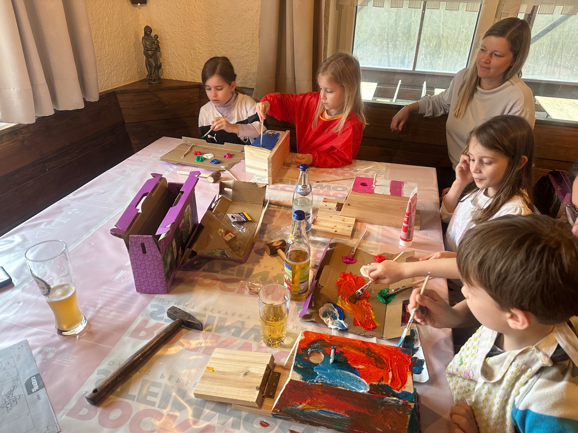 Im Naturfreundehaus wurde das Projekt „Brut und Nistkästen bauen“ zu einem vollen Erfolg. Gemeinsam mit großer Begeisterung haben die Kinder gehämmert und genagelt, um ihren eigenen Nistkasten zu gestalten auch farbliche aktzente kamen nicht zu kurz. Dabei lernten sie spielerisch viel über heimische Vogelarten und deren Lebensräume. Besonders schön war zu sehen, wie stolz die Kinder auf ihre fertigen Werke waren. Das Projekt verband handwerkliches Arbeiten mit Naturerlebnis und hat bei allen Beteiligten große Freude geweckt.